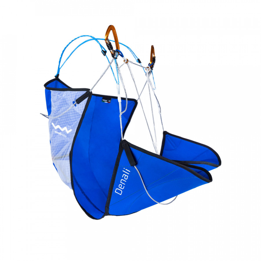 O  arnês Woody Valley Denali  é extremamente leve (apenas 212 g no tamanho P) e foi projetado para parapente, caminhada e voo. Projetado para quem gosta de voar e fazer trilhas/escaladas e não abre mão de peso e compacidade mínimos.